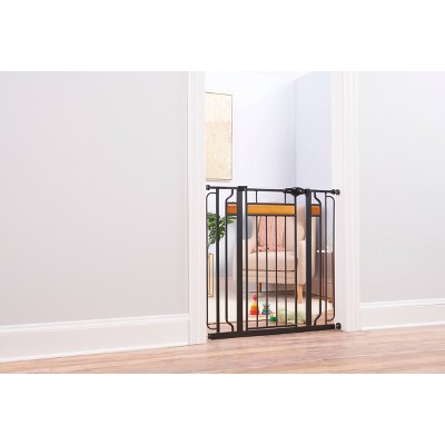 Regalo Home Accents Extra Tall and Wide Walk Thru Baby Gate Includes DÃcorThe all steel design is durable and convenient with a walk-through door. You can extend the gate with a 25 inch to a 12-inch extension to fit your doorway properly. Perma Child Safety Stellar LED Safe Step Auto Close Safety Gate.