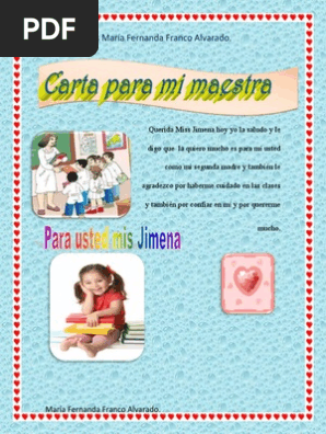 Cuando empezó esta pandemia sentí como si me movieran el piso ya no había tierra firme y estaba balanceándome para tratar de. Estos modelos que te mostraremos a continuación son sencillos ejemplos que te ayudarán como inspiración para escribir tus cartas para profesoras pueden ser cartas de agradecimiento a una maestra o para expresar la inspiración que esta te dio para seguir con tus estudios. Espero que te sea útil este post Esta es mi participación en la dinámica 17Blogueras17Días para. Un muy feliz cumpleaños para mi maestra favorita la mejor que me ha dado clases en mi carrera la que nos dijo que estudio para ser alguien en la vida jaja que cumpla. Ideas para regalar a la maestra en San. Personaliza y envía tarjetas de san valentin por email facebook whatsapp. Alumnos de la escuela de Barbiana Carta a una maestra pág 1 2. Tengo la suerte de tenerte como mi maestra. La maestra y los alumnos de 6ºb abrimos este espacio para que particip é is con nosotros y nos conozc á is mejor.